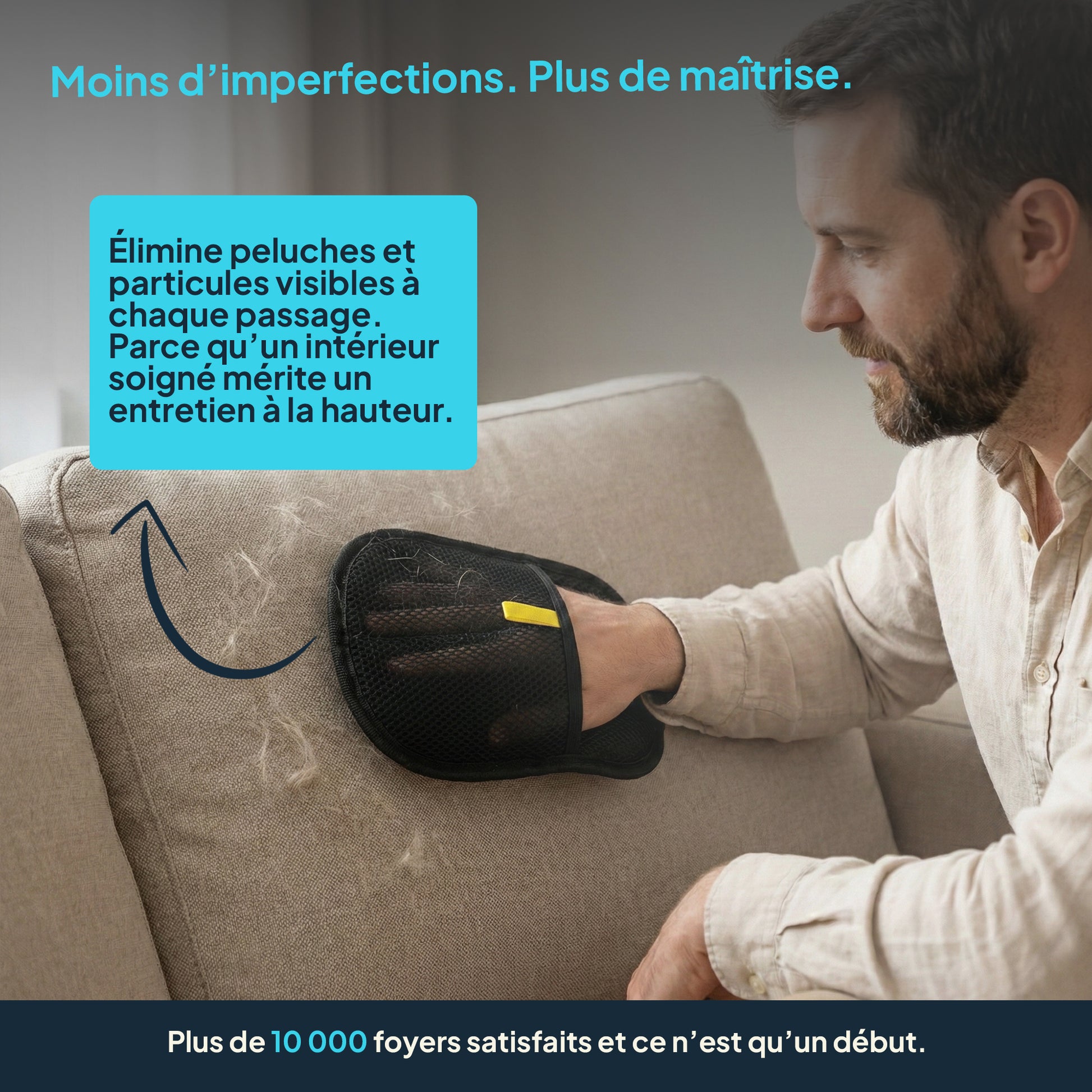 Entretenez vos textiles avec un geste simple et précis. Le gant double face permet un nettoyage ciblé des surfaces comme les canapés et coussins tout en restant doux pour les tissus.